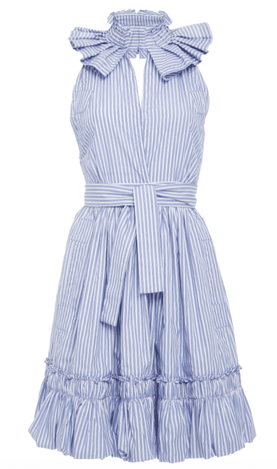 Poplin/shirting/stripes have been errrrrywhere this season, and I’m loving all the feminine detailing so many of them boast, from flared sleeves to asymmetrical necklines to ruffles. For example: this striped, ruffled shirtdress from Alexis ($585) is so my style — perfect for Church on Sunday or a backyard BBQ (that back!!), especially with some espadrilles.