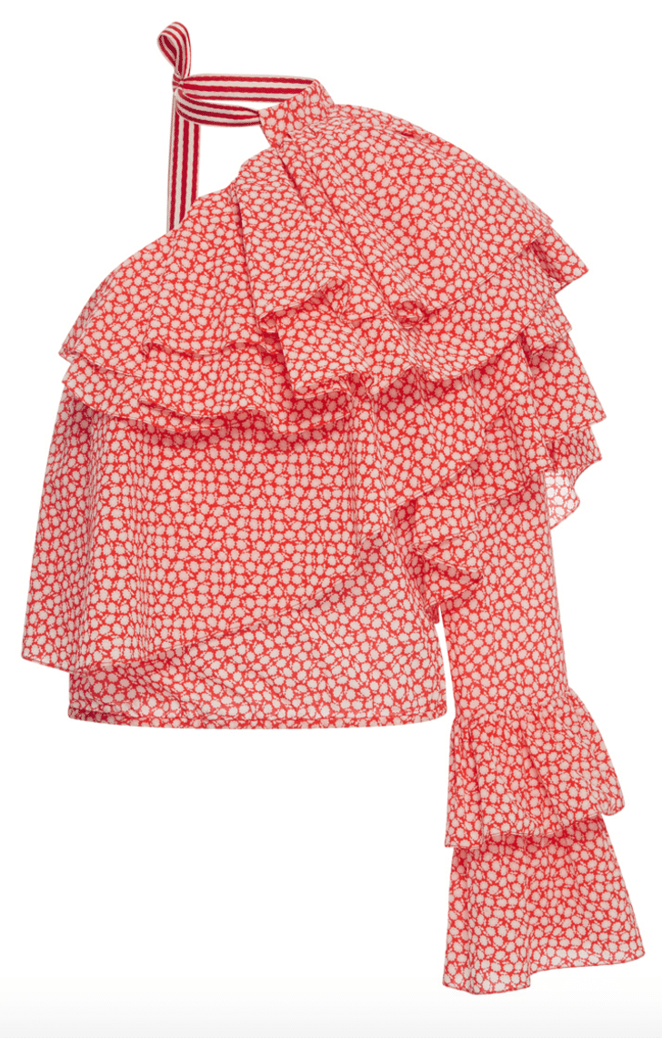 OK, I could do a whole effusive post over the awesomeness that is the label Rosie Assoulin (ugh, the ruffles! the femininity! the over-the-top flounce and flare of it! — and, I mean this dress?! Dead. Die.), but this top in particular caught my eye ($1,695).