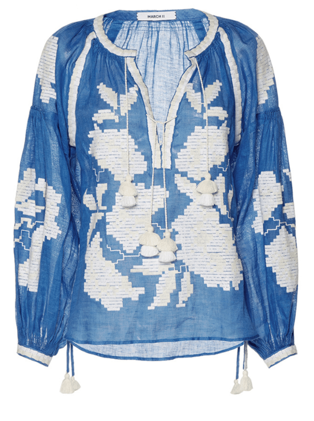 Mama mia, there are a lot of statement tops in this post. So much goodness out there right now. But the final one here is the boho embroidered blouse that hot line March11 popularized last season or the season before: