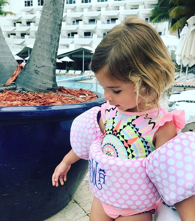 Finally, mini is too little for this right now, but I am already plotting to snag one of these monogrammed puddle jumper covers ($45) from Etsy to go over one of these puddle jumpers ($21). I mean, how ADORABLE is the babe below in one?!