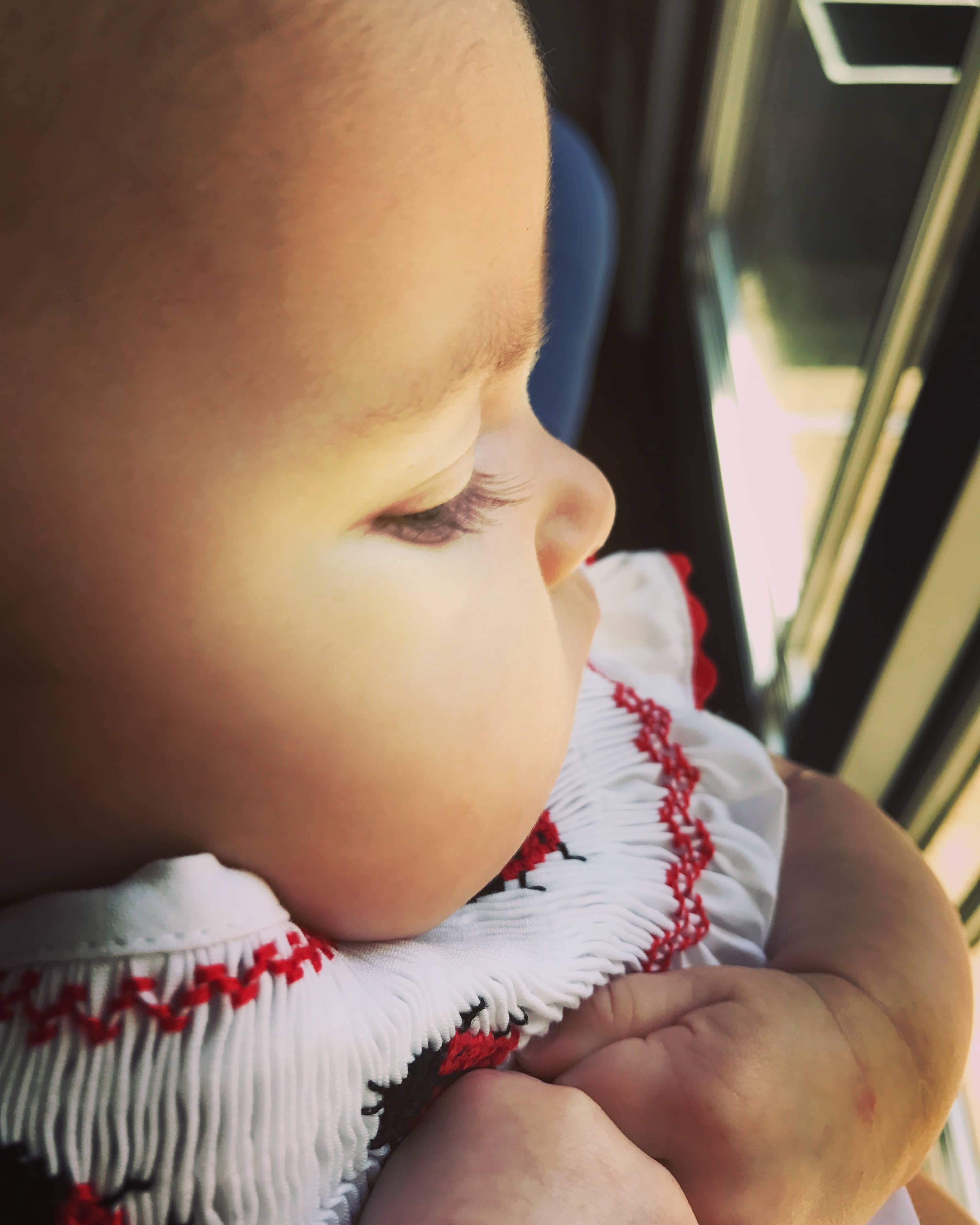 +Smocked ladybug dress ($38 — seen on mini in the pics in this post). The cutest! I have bought several exquisite hand smocked pieces from Etsy Store Crimson Carousel — such great quality. The fabrics are gorgeous and the pieces arrive nicely pressed. I also love this whale bubble ($42) and this striped sailboat dress ($42). From a different store — this merry-go-round smocked dress ($75) is BEYOND.