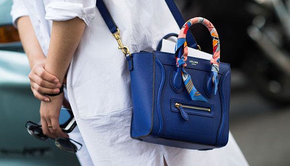 A few seasons ago, Fendi started styling its purses with an elegant scarf wrapped around the handle. I know this because my bestie snagged a maj Fendi bag (all the jealous eyes) and reported that she had been “upsold” into buying a coordinating scarf to tie around the handle, which was not really her style, but which we both obsessed over. (And which promptly became her style.) The snap shown below is actually of a Celine bag, but this is very much the Fendi steez: