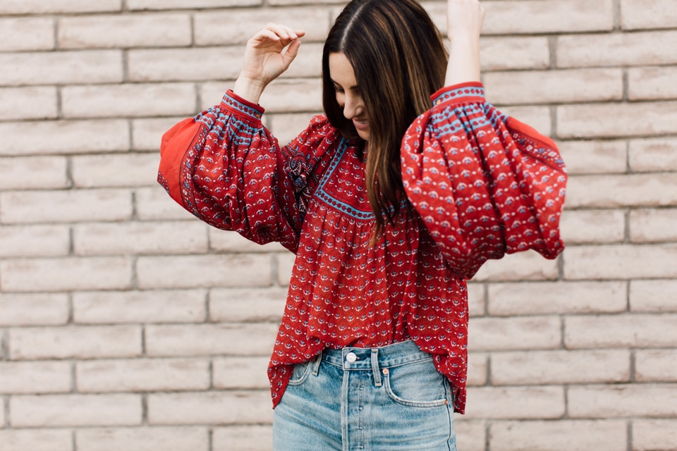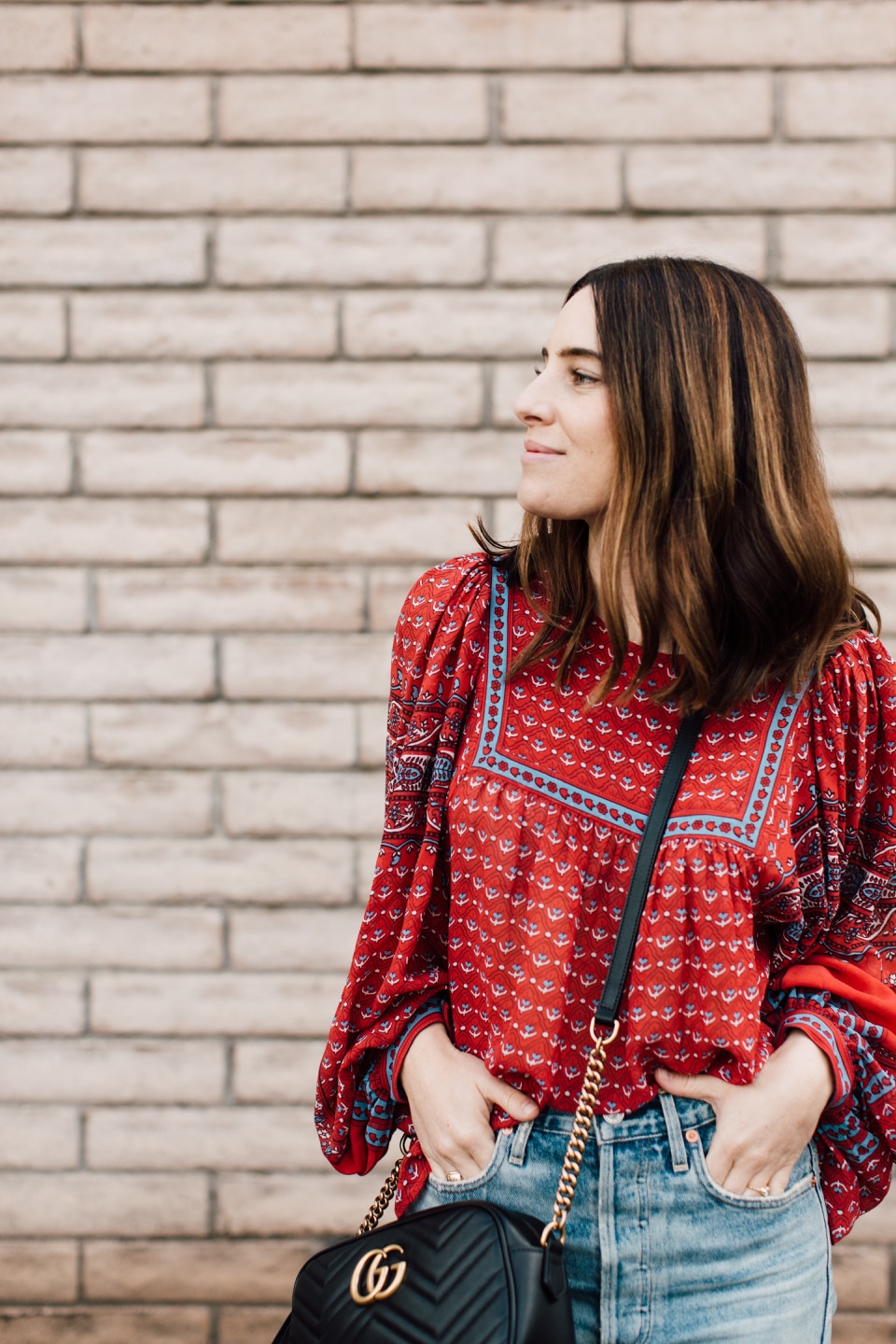Though I generally gravitate towards the feminine (ahem, BOWS!), there’s a stubborn little boho streak that will rear its head every now and then, introducing confusion in my wardrobe. (Sometimes I look at my closet and am tres confused by the miscellany of styles represented.) I felt compelled to pull out all my boho-leaning pieces after seeing Alicia of Cheetah Is the New Black in this stunning Ulla Johnson blouse ($414). [Aside: I’m actually planning to wear an Ulla Johnson dress for Easter. LOVE that label.]