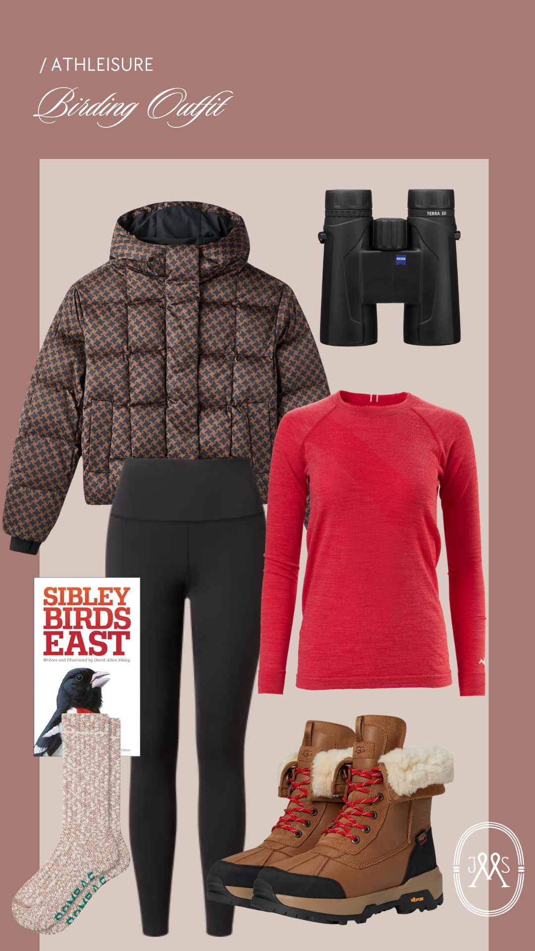 PUFFER (25% OFF WITH JEN25) // MY BIRDING BINOCULARS // RHONE LEGGINGS (25% OFF WITH JEN25) // BEST AND WARMEST BASE LAYER // SIBLEY’S BIRDS BOOK // CURRENT BOMBAS OBSESSIONS // ADIRONDACK BOOTS