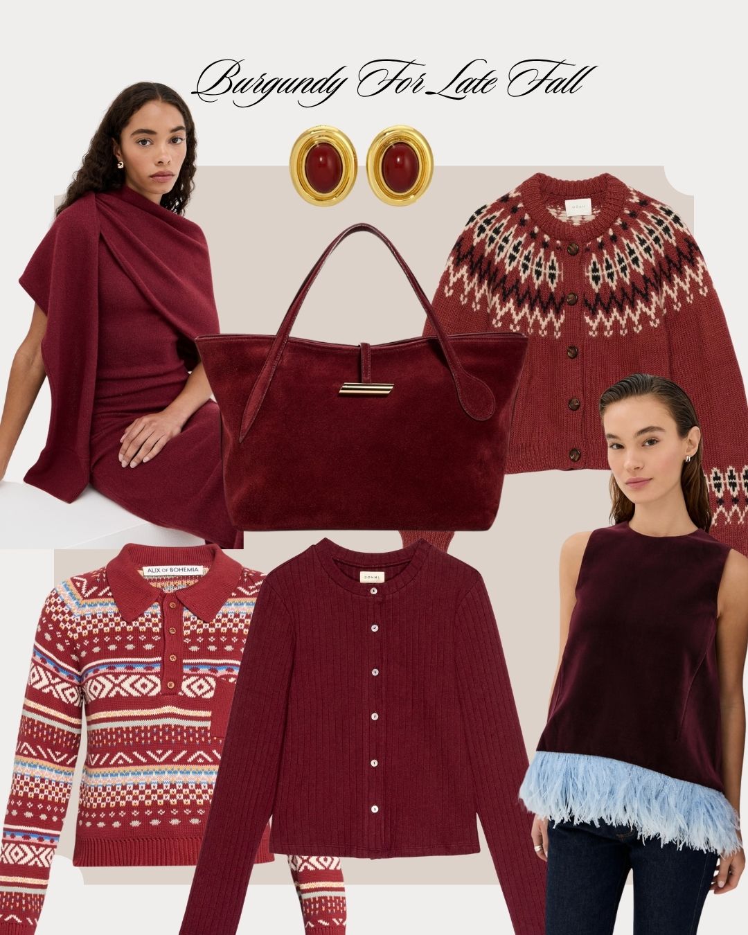 Burgundy is a color that does all the work—substantial, moody, broody, rich. The Heathcliff of fall colors if you will. (Ha!) I love the way it elevates jeans, softens black, and beautifully complements camel, cream, and navy blue. Just one pop of burgundy (like a ribbed sweater or structured coat) makes an outfit feel thoughtful and refined without trying too hard. One of my absolute favorites is the Clarke Cardigan by Doen. I actually own this in the ivory and find it is one of my favorite sweaters of the season — has a nice cozy hug to it, not too oversized, and I love the slim tailoring at the wrists. Another burgundy standout worth mentioning: this satin slip skirt from Tuckernuck, which many of you have purchased. I love the idea of styling with a tone-on-tone (matching) burgundy sweater, but it would also look fabulous with gray, navy, or cream, or layered beneath a brown plaid blazer.