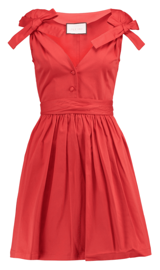 The holidays are just around the corner, and I died over the beautiful Amber Venz in this bow-shouldered little red dress from Alexia Maria — sadly, it’s now sold out, but I found a lookalike style from Alexis on sale for $231!) (I also love this.) However…I already bought this lipstick red jumpsuit with the cutest bow-shoulder detailing, so I’m not sure I need both…!