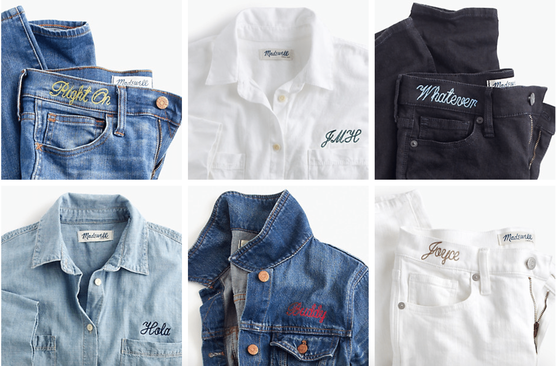 Madewell has just recently introduced denim embroidery as a service they offer — so rad! I love (!!!) the idea of getting a denim jacket personalized with my name (should I do “Magpie” or “Jen”?!, $118)