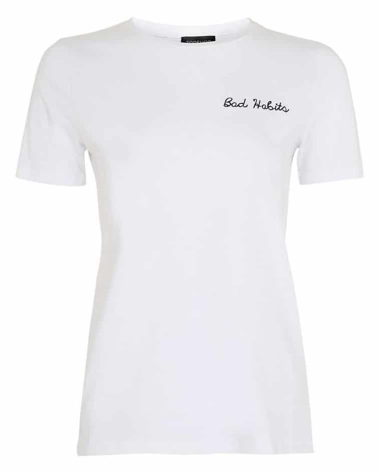 You can always get the trend for less with these TopShop tees ($26 a piece — “Bad Habits” here and “Femme Liberte” here):