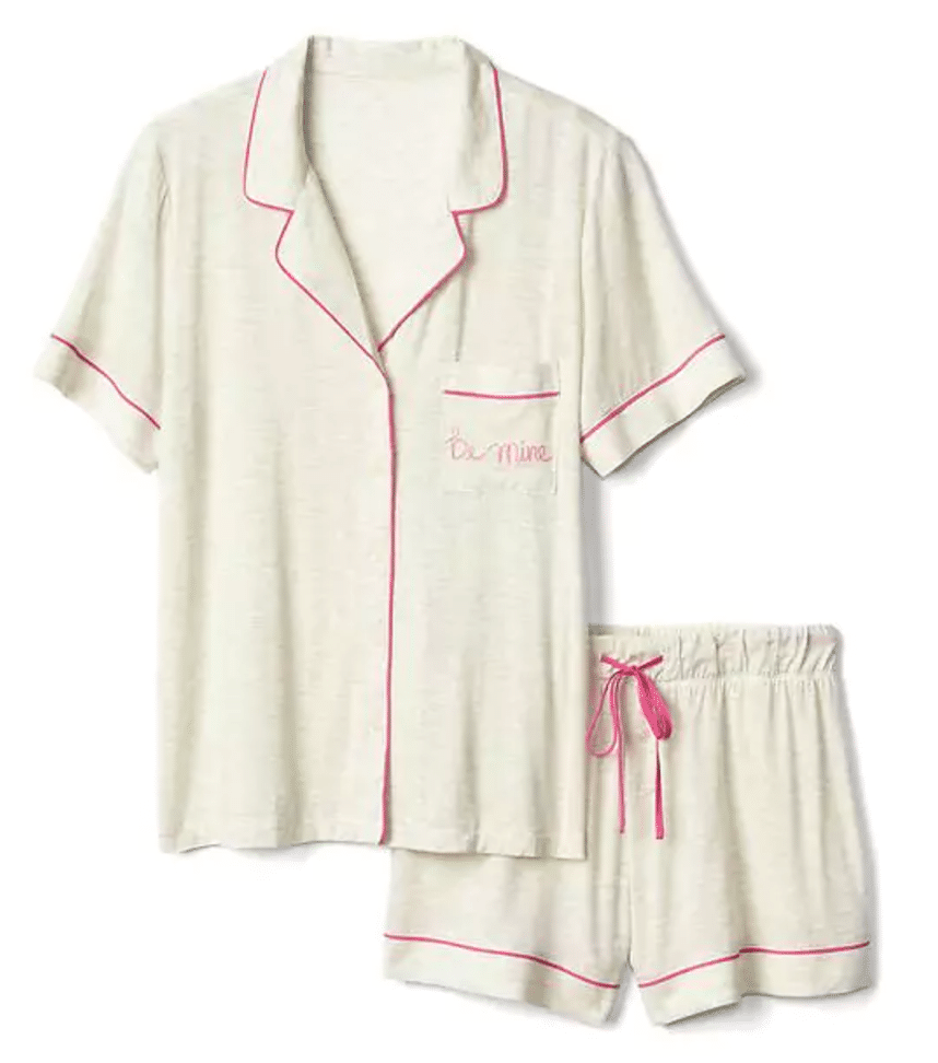 But my favorite little snag? These Gap modal cotton pajamas with the sweet little embroidery inspired “Be Mine” on the pocket ($59, but currently 30% off!). {They remind me of my favorite pair of short pajamas ever, by Eberjey.}