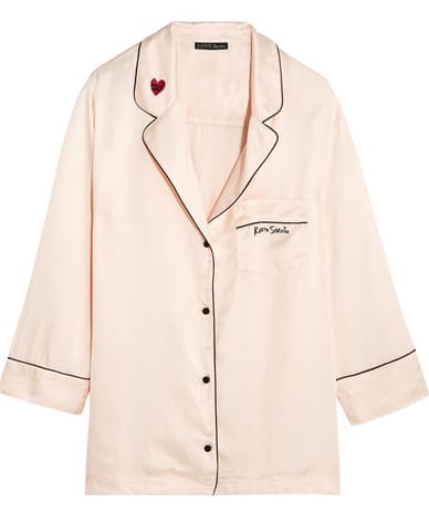 Or, you can splurge on these beyond adorable silky pajamas from line Love Stories ($135 for top, $65 for bottoms). Love that embroidered “room service” on the breast pocket.