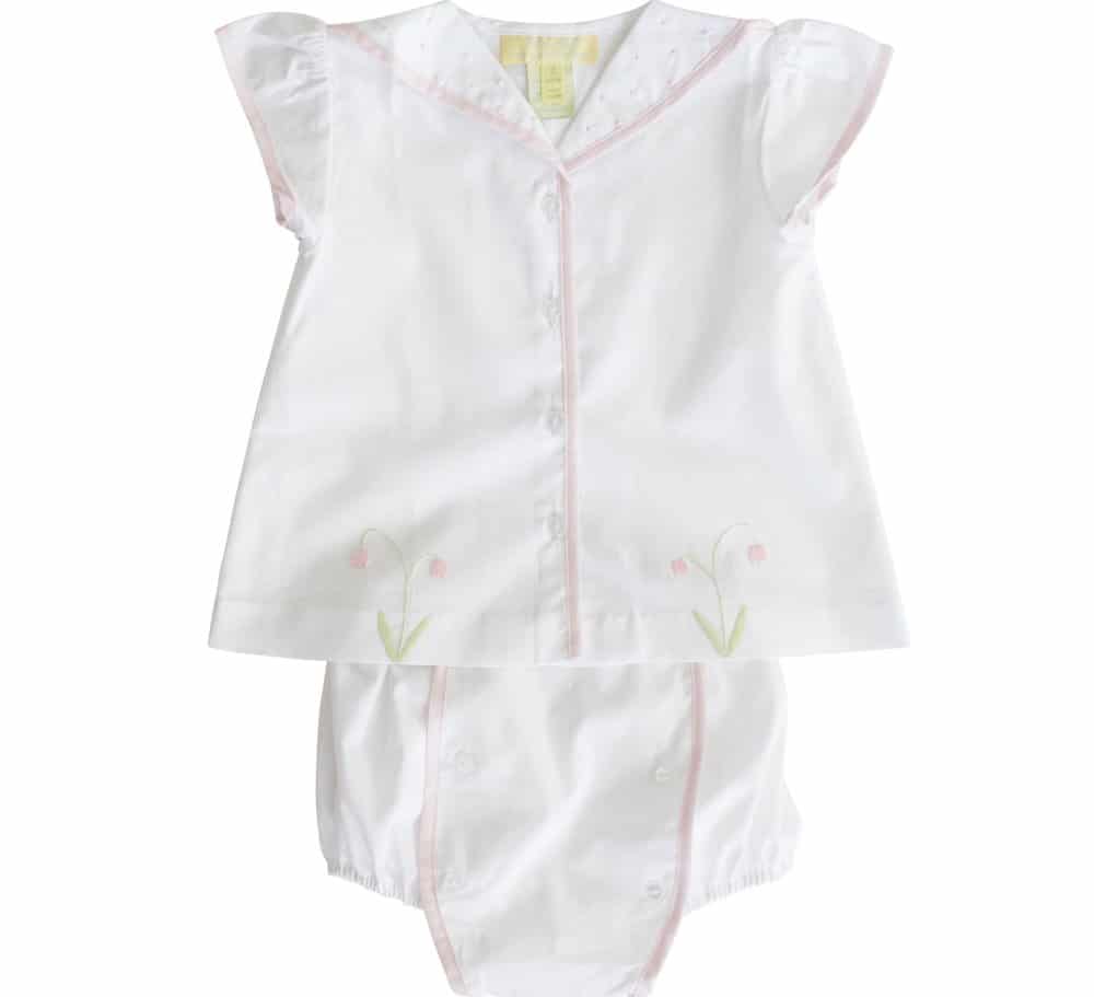 +Similarly, Bonpoint is the gold standard for high end European baby wear. The price tags are…nuts. This floral romper ($285) is exquisite.