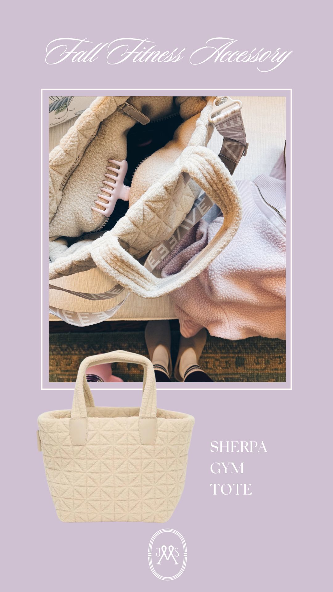 Also, this little sherpa tote has been putting a little joy in my mornings during dropoff — an ideal accompaniment for fall athletic wear, whether wearing to the gym / yoga studio or just to the carpool line. Super roomy and comes with a removable logo strap and an adorable little sherpa pouch.