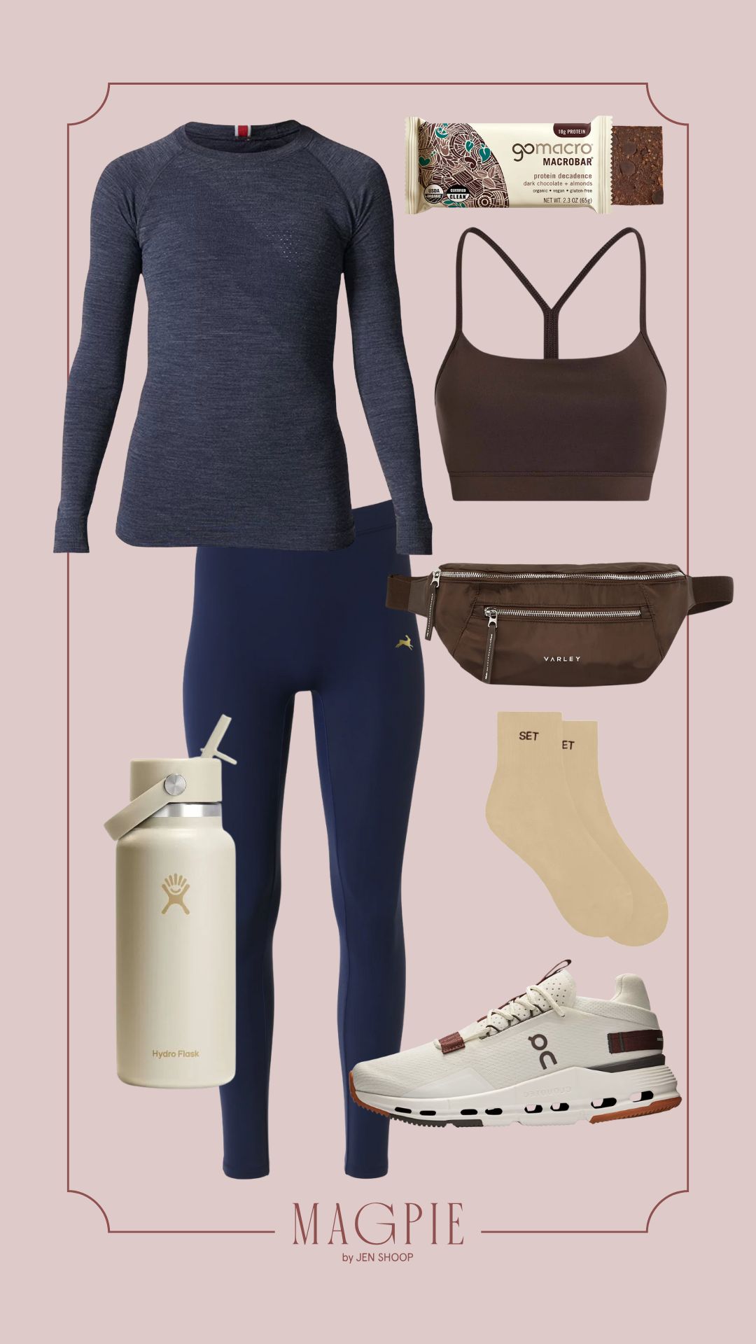 ALWAYS CERYS BRA // W TURNOVER TIGHTS // BRIGHTON BASE LAYER* // CLOUDNOVA 2 // SET ACTIVE SOCKS // WIDEMOUTH WITH FLEX STRAW CAP // MACROBAR // BELT BAG