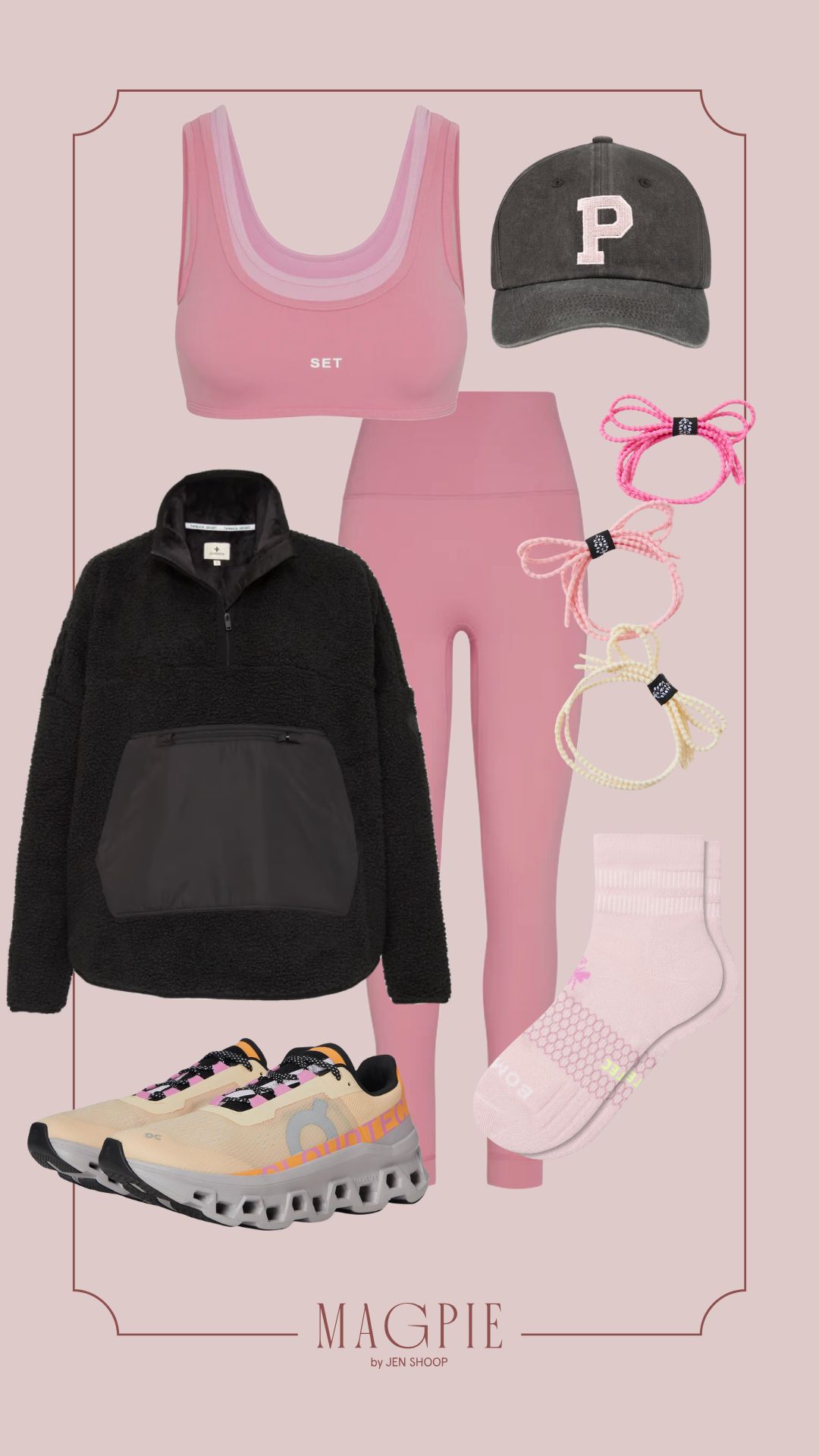 SET ACTIVE BRA // SET ACTIVE LEGGINGS // PARKE HAT // TUCKERNUCK FLEECE // HAIR TIES // ON CLOUDMONSTER // BOMBAS SOCKS