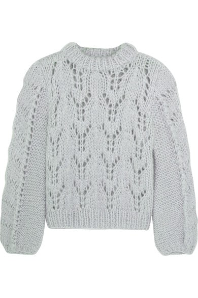 I have to tell you that as I think about my fall wardrobe, I’m in large part inspired by the gorgeous retro-leaning pieces in Ganni’s collection — namely this stunning mohair sweater ($475), also seen on the bombshell above.