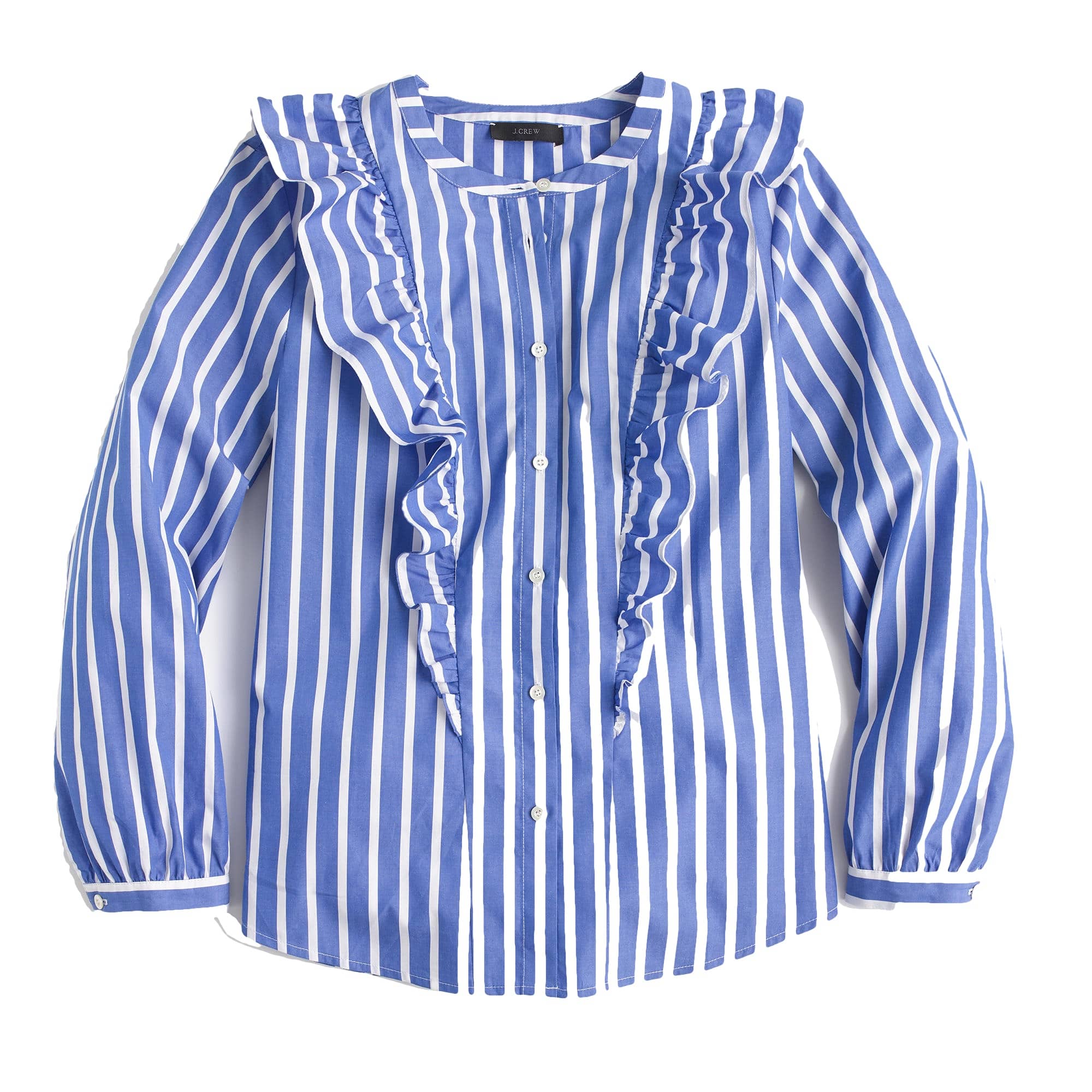These have been all.over.the.place for the last season, but the frilled statement blouse is a great pick for fall — and I’m now eyeballing this striped J. Crew lovely ($78). I love the cerulean blue color and the trim cuffs. This sleeveless, bow-front Banana find ($68) is also a great pick for transition-to-fall styling — I could see it layered under a blazer — or this asymmetrical Loft style ($59 — I love that masculine cuff!)