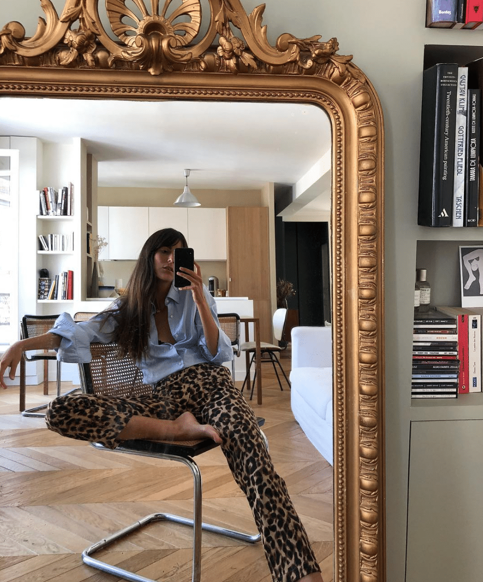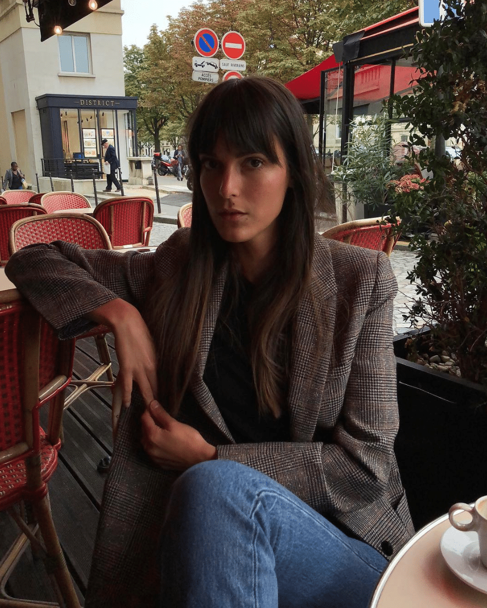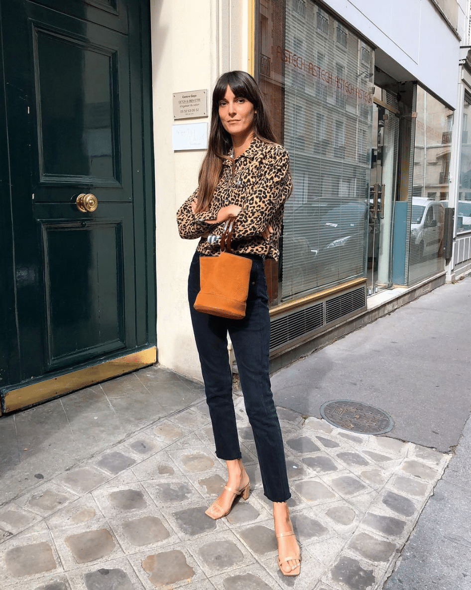 I have yet another girl crush, this time on the ultra-chic Parisienne Leia Sfez. Her simple and sophisticated look features a lot of on-trend denim, French girl bangs (siiiiigh), perfect-fit tees (these have been restocked in all sizes!), and basket bags a la Jane Birkin. Above, she’s wearing the cult-following “Antonia” bag by Shrimps that has been all over the place lately — though you can get the look for less with this incredible (under $80) dupe.