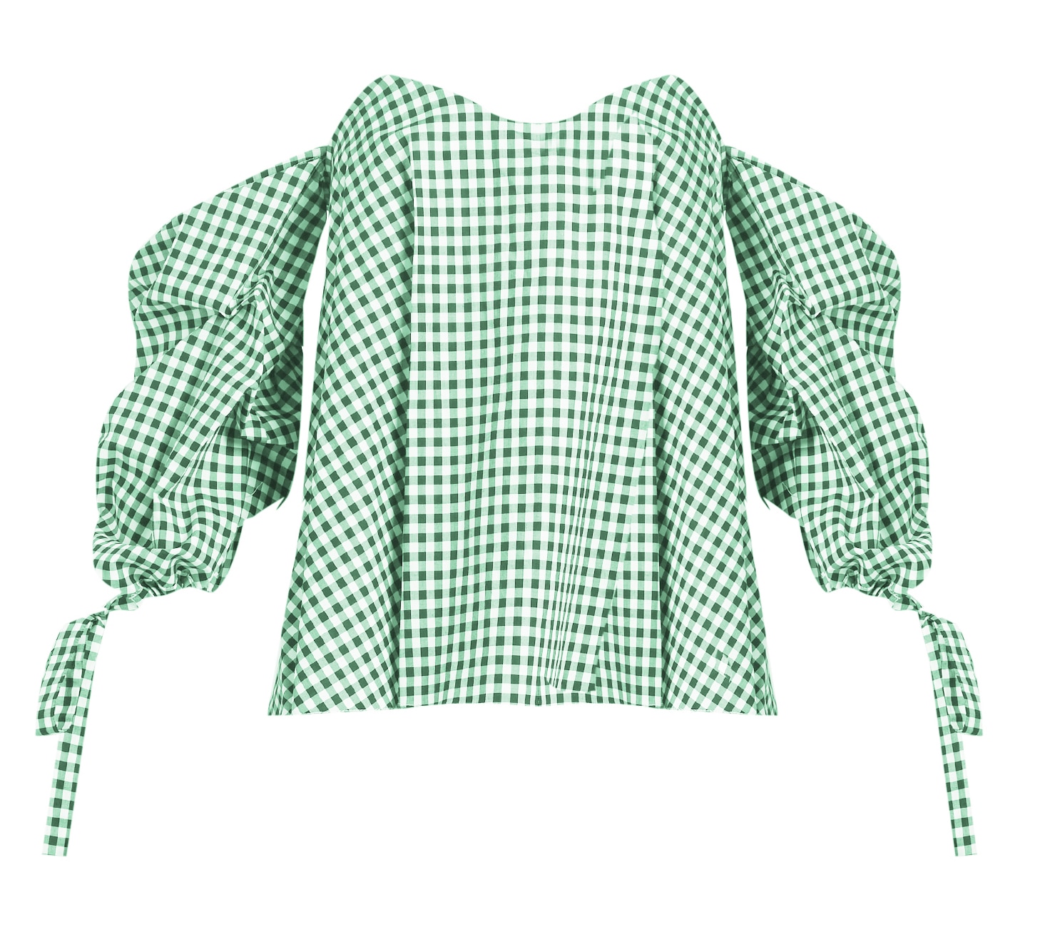 Or, for a cool prints mash-up, with white jeans and this gingham OTS top ($395):