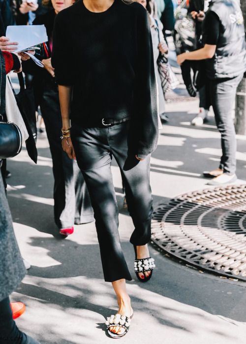 Love love love their fearlessness. Â That last snap in particular reminds me to just GO FOR IT when I see something I like. Â Enorma-pearl slides? Â Why the hell not?! Â She looks super chic with that glossy red pedi.