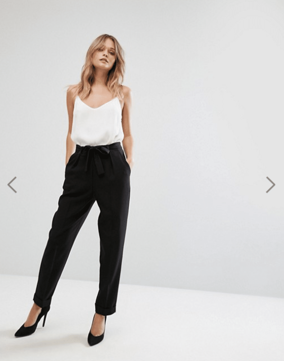 I think I wear jeans too much. I was just realizing the other day, as I was sorting through clothes — what to donate? what to give away to friends? what to sell? — that I have about twenty pairs of jeans, and then one or two pairs of cigarette pants and one or two pairs of joggers. I saw these adorable forest green tie-waist trousers and immediately thought I might channel Francesca from Master of None in them. Sadly, they sold out before I pounced (but man oh man do I dig forest green RN), but they’re still available in black ($40), which may be the better move, anyway. I am imagining them paired with a simple white blouse or a denim button-down and loving the ease and classiness of it all.