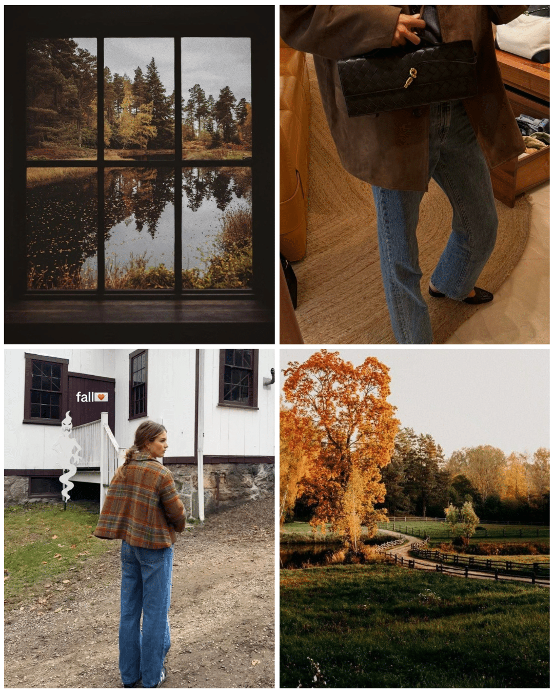 +FALL MOOD BOARDING: Pinning lots of fall hygge here. So relaxing to me, and often sparks new styling ideas. I love the simplicity of this navy cotton sweater with brown suede accents (seen top left below)…! Thinking of recreating with an under-$100 sweater like this or this.