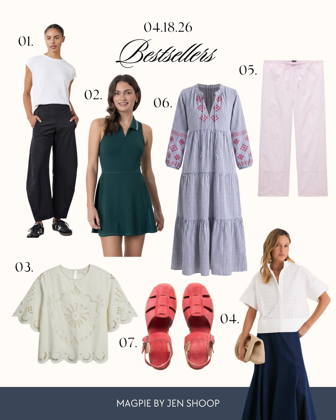 01. RUTI PANTS // 02. RHOBACK ATHLETIC DRESS // 03. SEA VIBES FOR LESS // 04. EYELET SWING TOP // 05. J. CREW LUNA PANTS // 06. GINGHAM CAFTAN // 07. FREDA SALVADOR FISHERMAN SANDALS // 08. CHIC AND SEXY SCOOPNECK DRESS // 09. NEGATIVE WHIPPED TRACK PANTS (THE BEST, IN A NEW HYDRANGEA BLUE COLOR) // 10. ELEGANT KITCHEN RUNNER