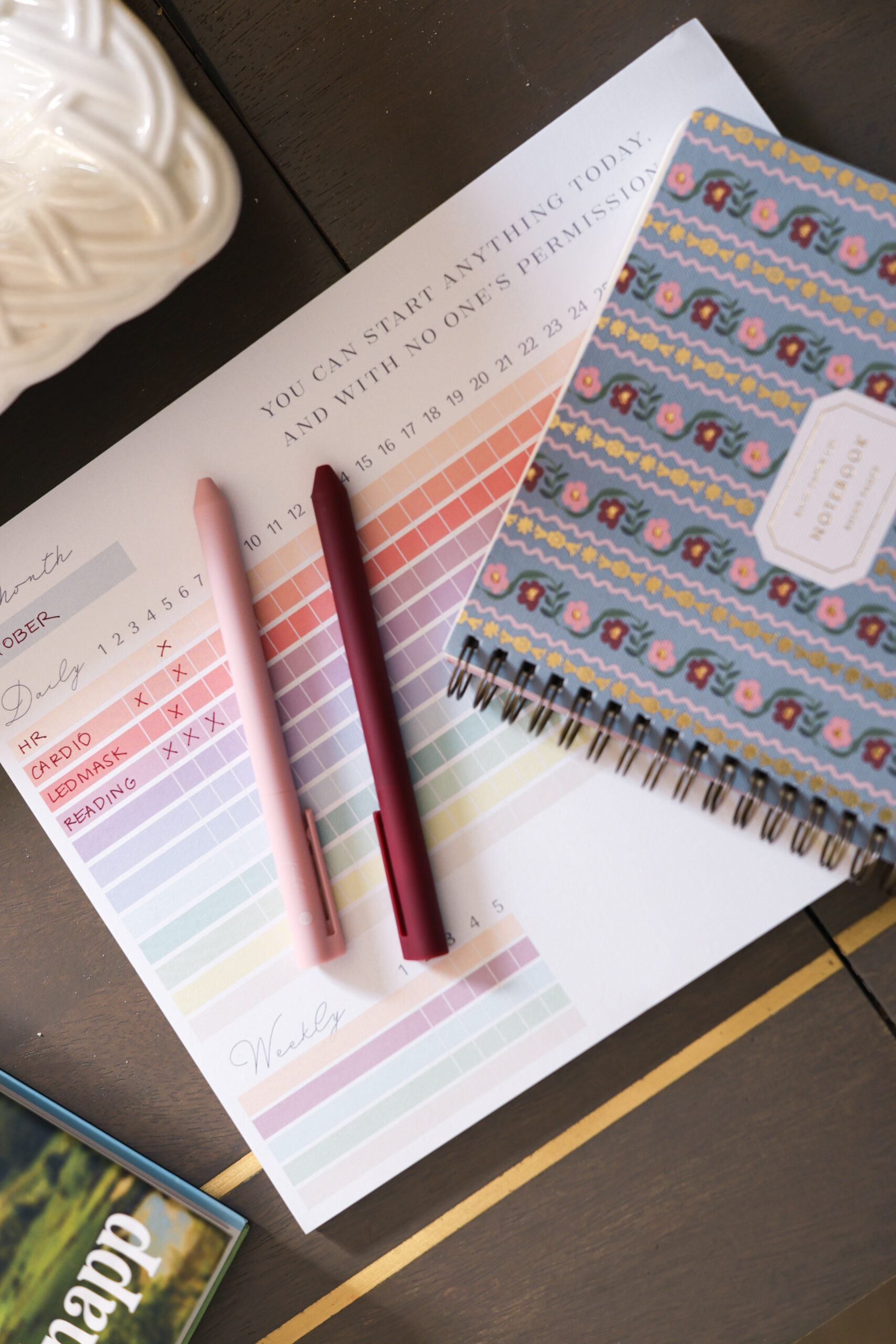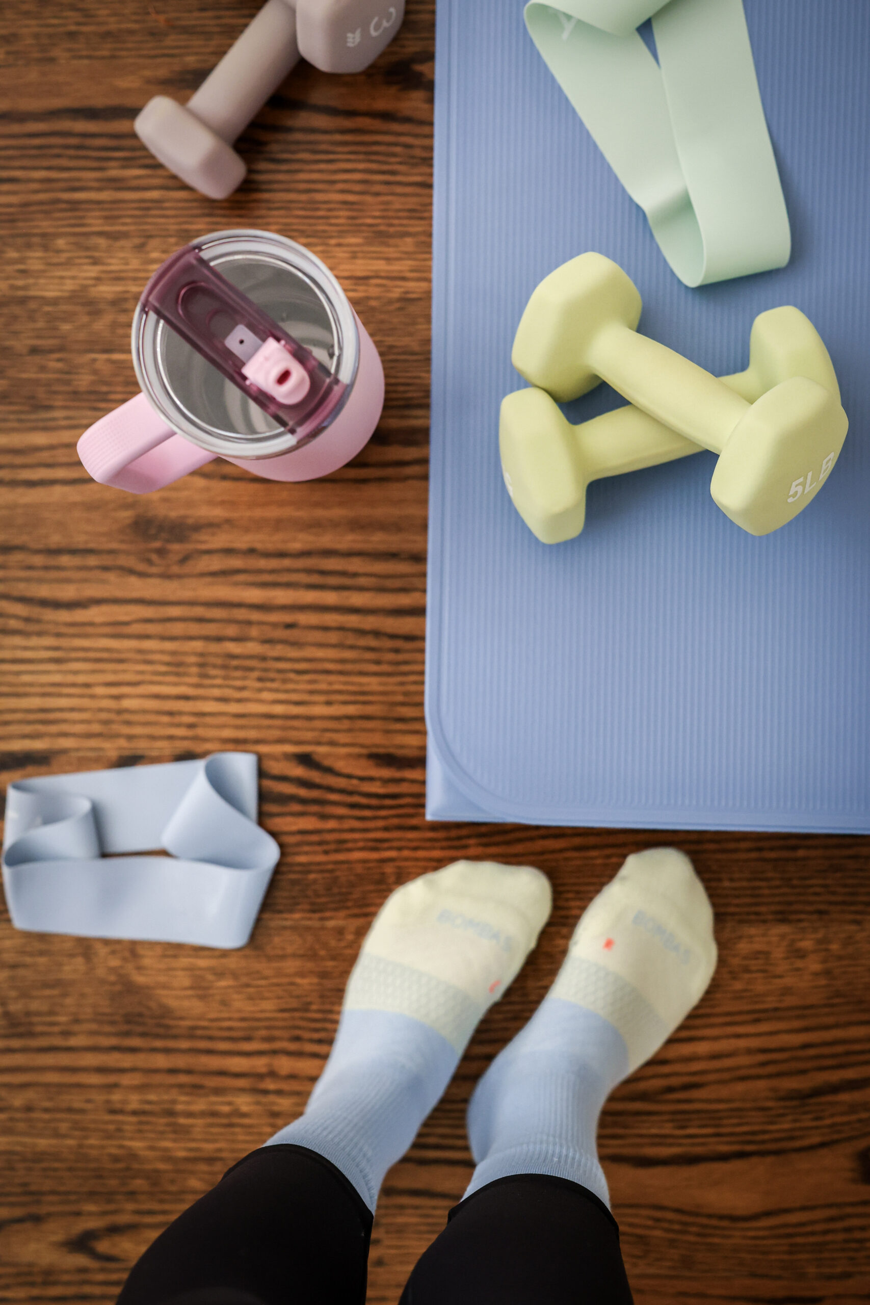 ABOVE: HABIT TRACKER // RIFLE PAPER NOTEBOOK // STAKT MAT // DUMBBELLS // BEST RUNNING SOCKS // RESISTANCE BANDS