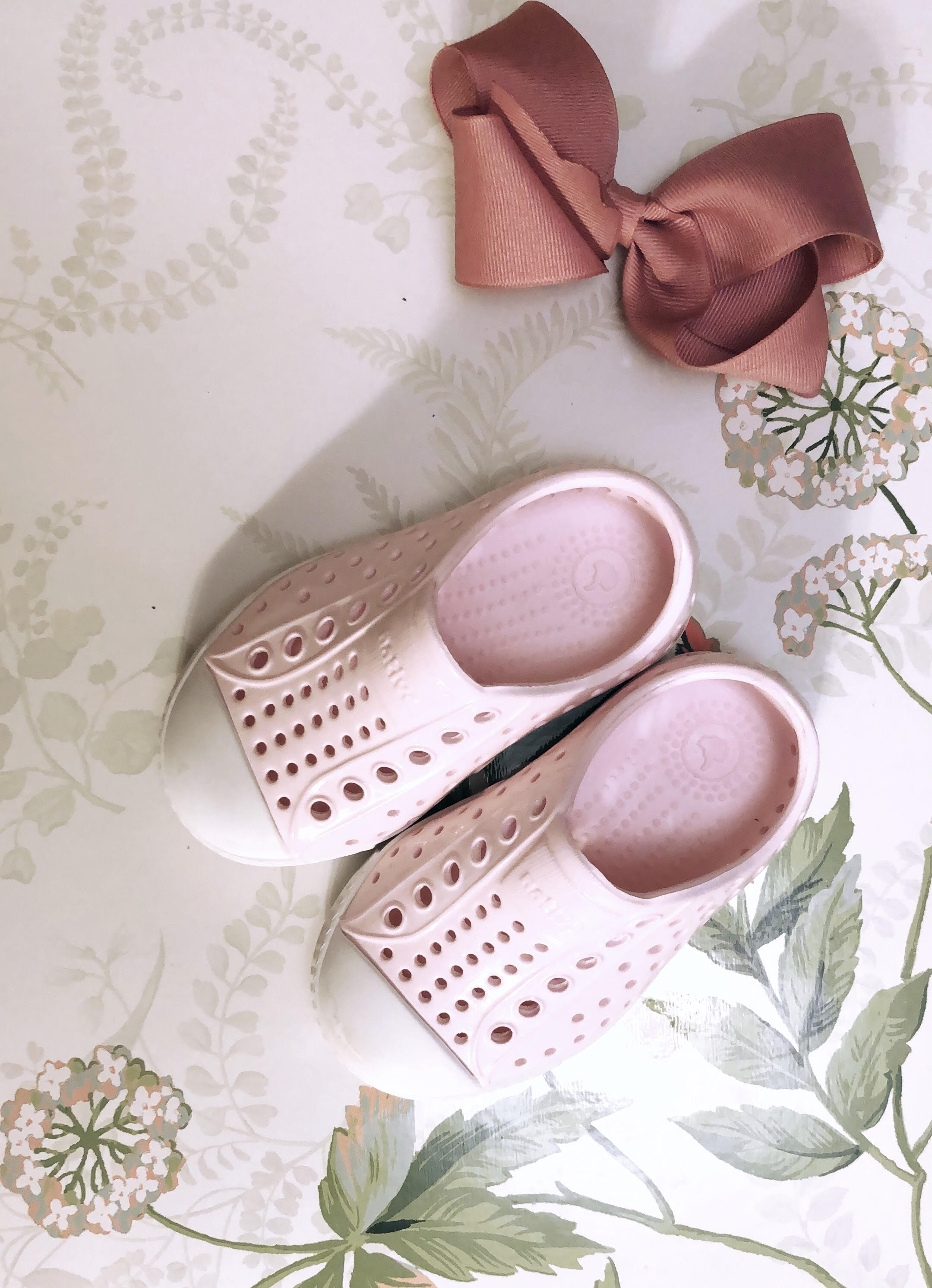 I can’t believe it, but mini is about to start walking. I think a lot of babies are already walking by her age, but I’m not worried — she took her time learning to crawl, too. Right now, she’s “creeping” — moving from couch to coffee table to edge of the TV stand, pulling herself along, and she’s pushing her little walker everywhere, too. I’ve caught her standing without holding on to anything a few times, too. For summer, I picked up a pair of these glossy pink Native sneakers — they’ll be good for days in Central Park, as they’re breathable and waterproof — and also a pair of these, after one of you lovely readers raved about the quality of Jacadi’s sneakers. (More amazing Jacadi sale finds here!)