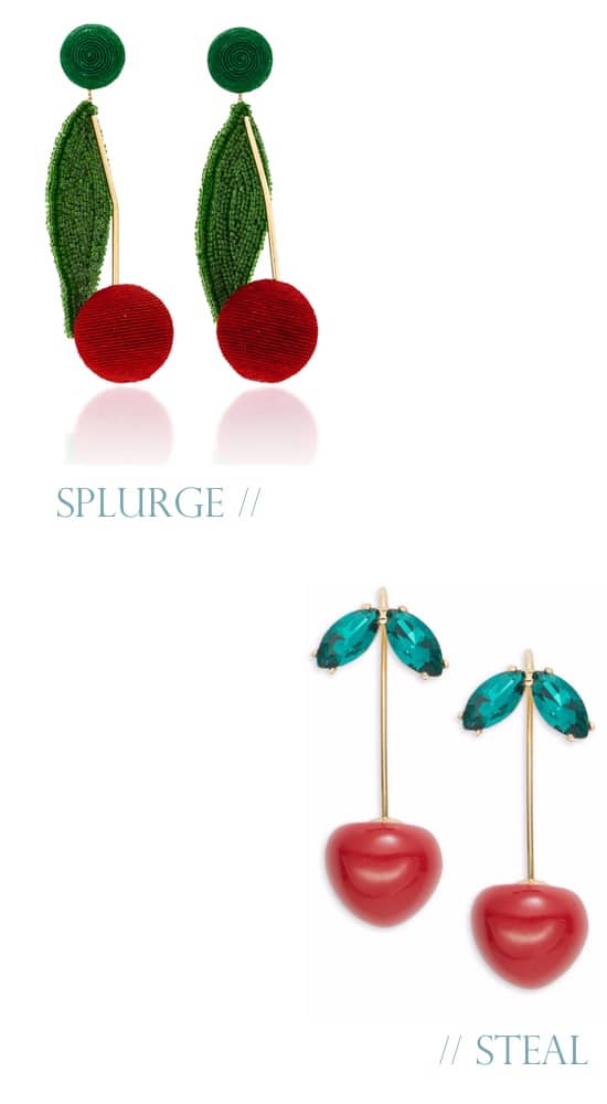 Speaking of cherries, I’ve had my eye on this fun pair of cherry earrings from Rebecca De Ravenel for a long while (shown in a different colorway in the snap at the top of this post). I found these less expensive Kate Spade beauties ($58) that might scratch the itch for less, though!