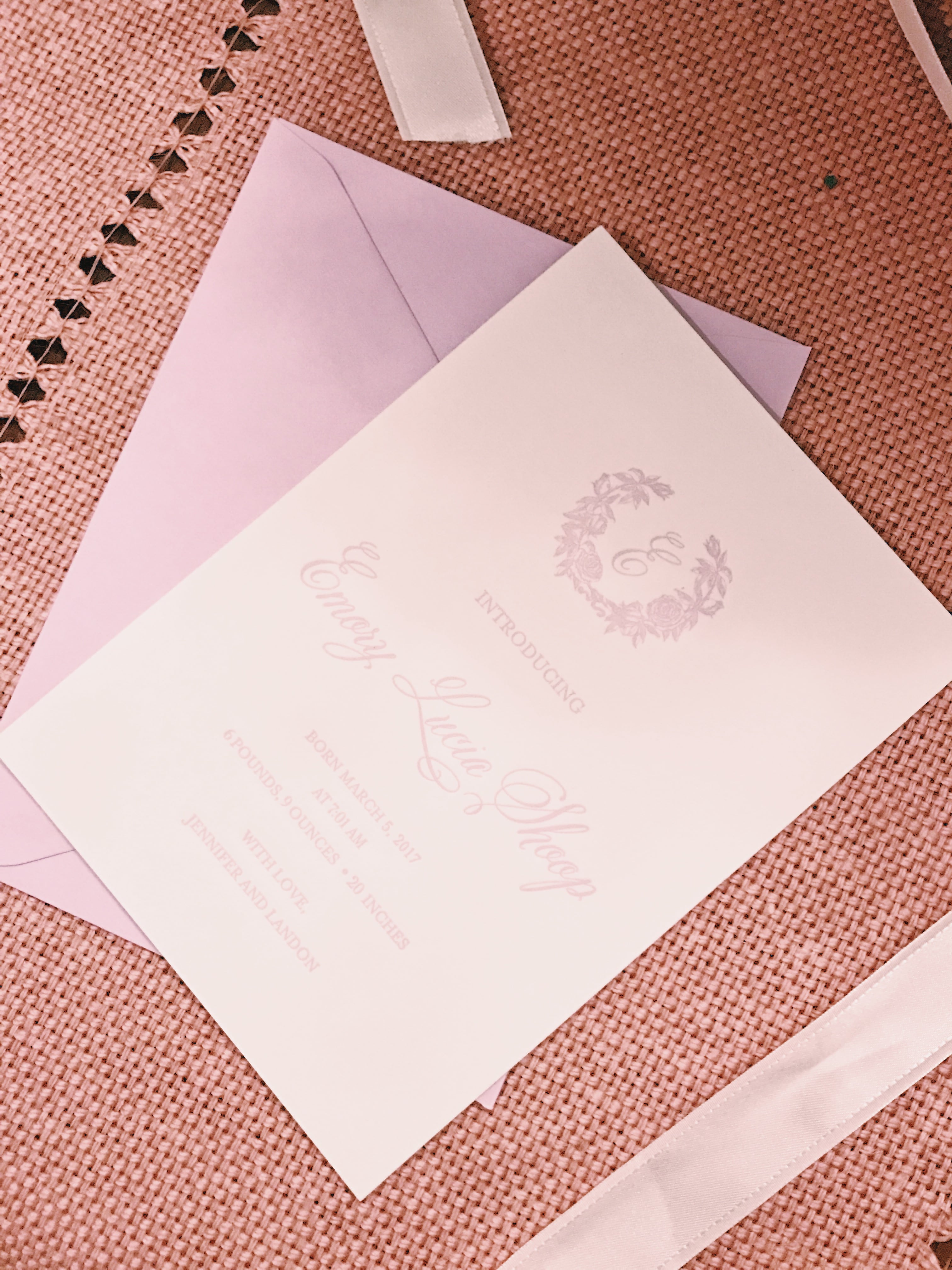 Side note: I LOVE mini’s birth announcements! Letterpress is always a good choice, and they’re so beautiful & elegant.