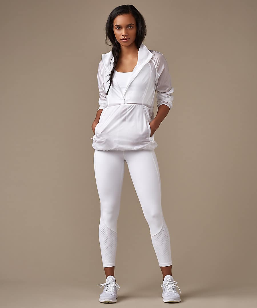 Inspired by these all-white-everything workout looks, I snagged a new pair of my favorite running shorts ($58) and a matching bra ($68) in graphic white. I will feel so crisp on my next run.