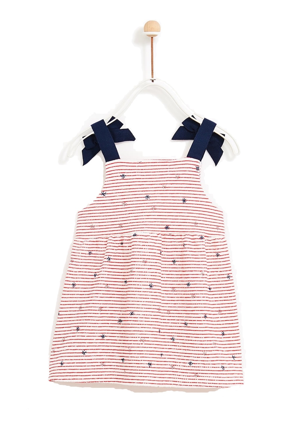 If there’s any secret to a well-dressed babe, it’s a well-organized mama. I find myself planning so far ahead, buying clothes out of season so that they’ll arrive on time or buying items at the end of the season for the following year in order to stay on top of festivities and holidays. I already purchased this $18 bow-shouldered dress for her for the Fourth, and she’ll wear it with a big navy bow and her water-friendly Salt Water sandals.