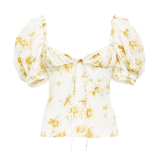If The Brock Collection is a little out of reach right now, I have been swooning over the pretty and far more affordable styles from the label Valencia & Vine. This yellow top reminds me an awful lot of the style shown just above — but is $125. I also love this maxi, this asymmetrical midi, and this bow-shouldered top.