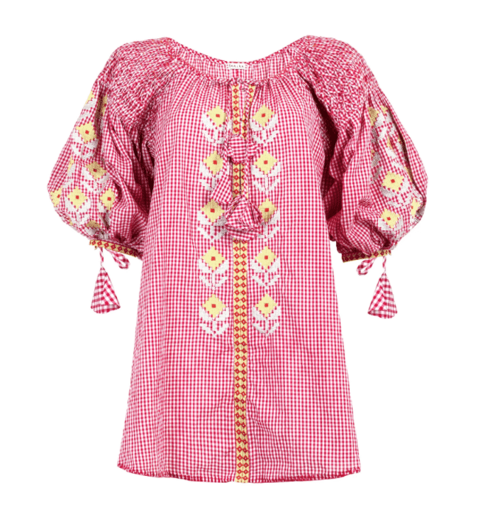 I was spotted in my fav Innika Choo tunic dress on Insta a weekend or two ago — absolutely LOVE this label and her on-trend styles! — and then discovered she’s now been picked up by Moda Operandi, making shopping a touch easier. I am obsessed with the gingham tunic below in tomato red ($250).