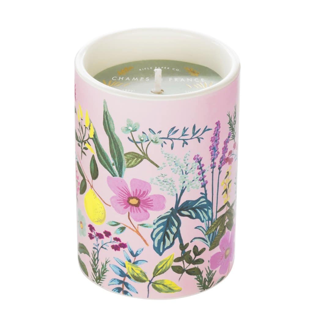 I am smitten with these beautifully decorated Rifle Paper candles ($35). The patterns are so charming and would liven up any old shelfie / bedsidetablie / coffeetablie (are those things?)