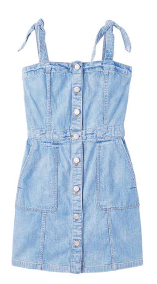 There’s this look that a roommate of mine in college had that I longed to emulate then, and continue to want to emulate now. She was a Southern babe — tanned shoulders, a spray of freckles across her nose, a thick drawl, and a petite frame–and, one hot summer August day, she drove up from her hometown in rural Tennessee to our shared second-year house on Gordon Street in Charlottesville (a total shanty, in retrospect, but just the kind of dingy house for eight girls to share in college…yes, EIGHT girls). We were painting the walls and moving in–and moving slowly, as it was one of those muggy-as-hell 90 degree-with-90-percent-humidity Charlottesville days–and she rolled up, barefoot and in a loose, white cotton dress, her hair thrown up in a devil-may-care knot on the top of her head, and she just had it. There was something 1960s hippie about her, but in a totally unrehearsed and modern way. She didn’t have a lick of makeup on. Did I mention she wasn’t wearing shoes? But she looked so effortlessly chic, so comfortable in her own skin. This denim dress brings her to mind–it achieves something similar to that look from 2003. Something you throw on and throw your hair up in and to hell with everything else.