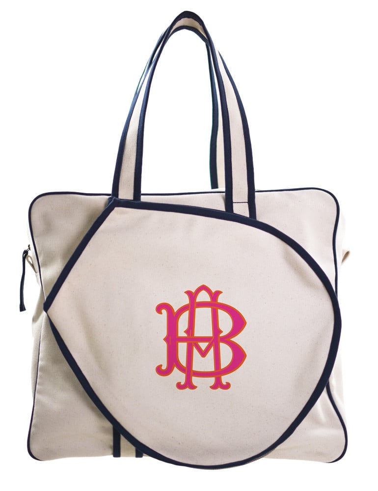 Mr. Magpie and I are discussing joining a city club thing that includes a gym, tennis court, pool, etc. this summer. It would certainly give me many-an-opportunity to wear/use the tennis gear her so generously bought me a few summers back (and some of these newer picks too — scroll down to bottom!) If we do get more seriously into tennis, I’m thinking I need this monogrammed tennis bag ($268). OBSESSED.
