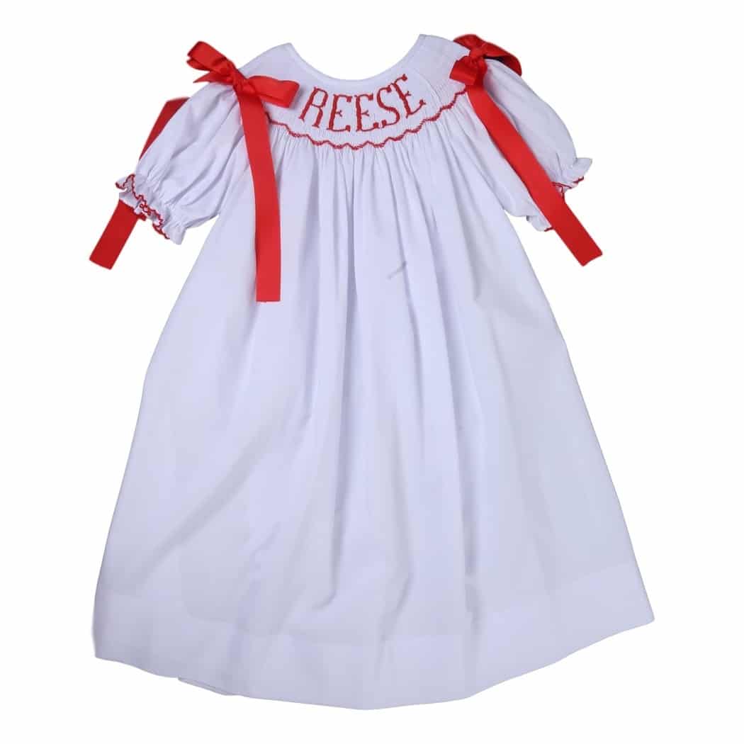 Not all of the pieces at this monogram-centric baby clothing e-boutique are my style (some almost feel like mini sorority girl clothing?!), but I’ve found some exceptional pieces here. I ordered a personalized holiday dress for mini from here that’s no longer available, but this one ($45) is equally as precious: