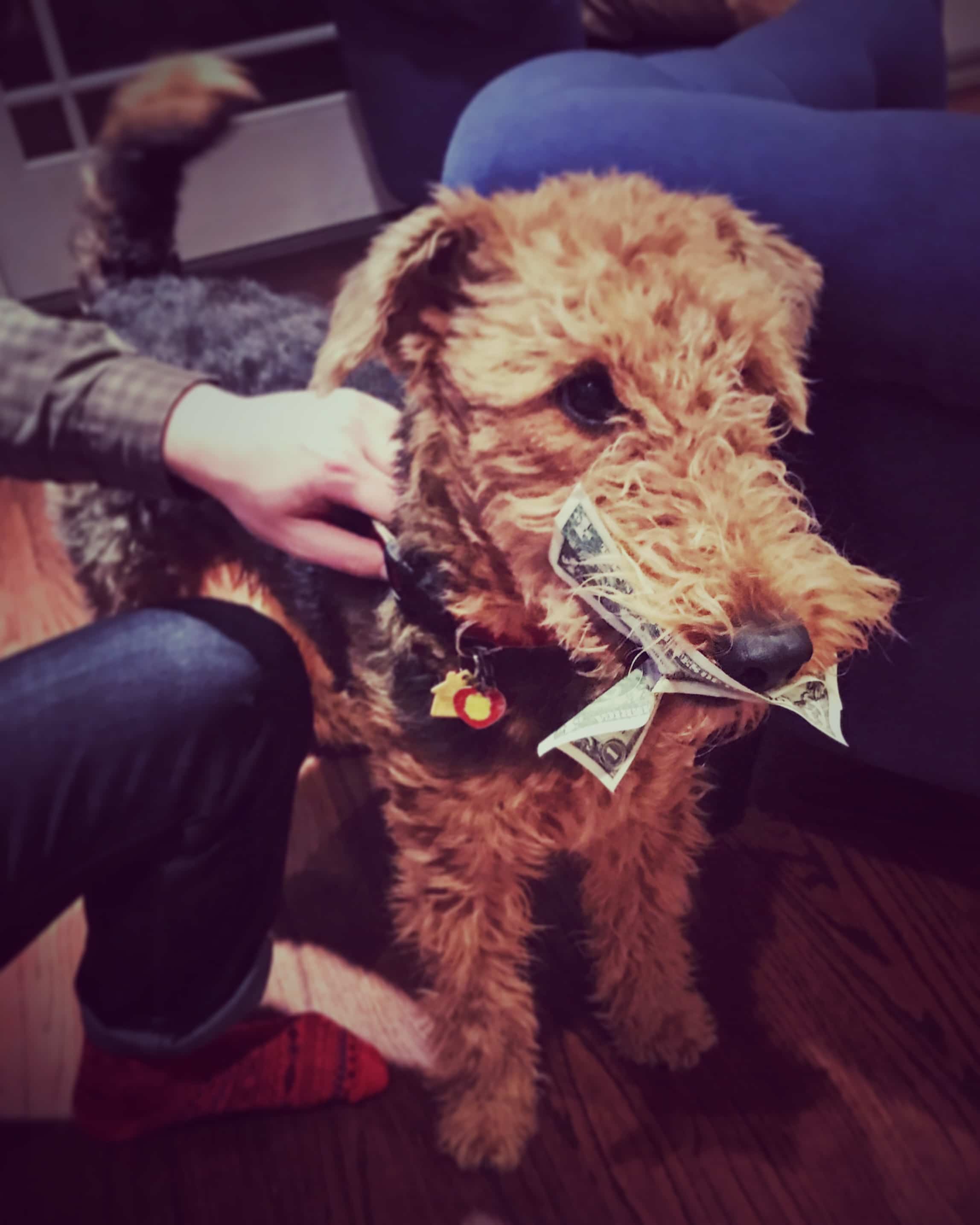 One of you lovely readers recently asked for an update on our beloved Airedale Terrier, Tilden (“Tilly”) Marigold Shoop. Â If you’re not a dog person, this might be a good time to tune out, because…lots of puppy love (and puppy gear recommendations!) to follow.