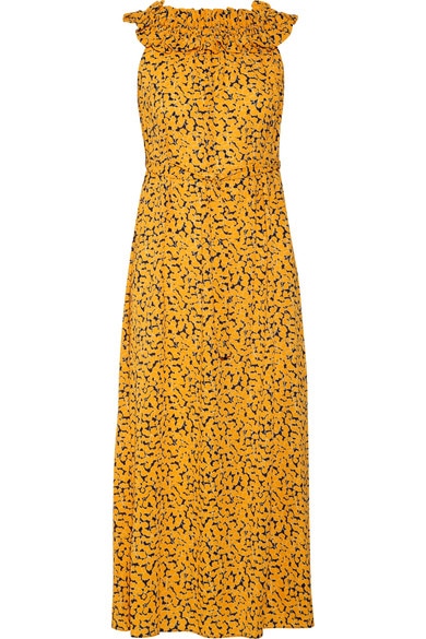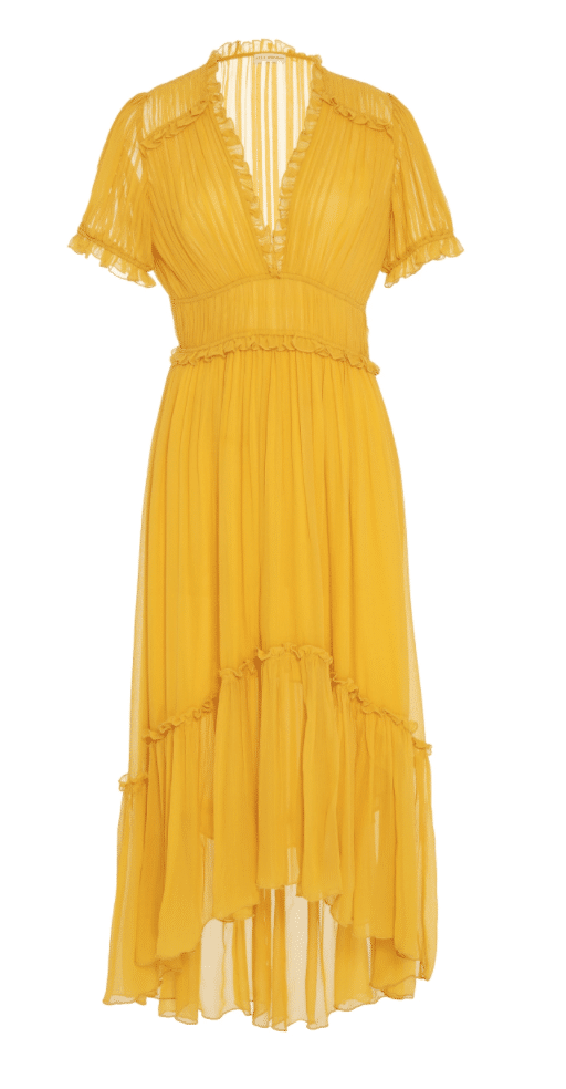 Oh mama: this frothy Ulla Johnson magic ($575). (OH ULLA.) That gauze-y, flattering neckline! The nipped-in waist! The floaty midi-length! But, you can get the look for less with this Tanya Taylor (on sale!), or this Moon River (under $80!), or this $110 TopShop find. Not that much less expensive, but this Rhodes Resort maxi has me all heart eyes over here, too.