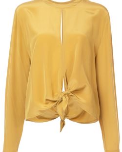 In that first snap above, I love the simplicity of that marigold blouse against the denim. Perfect. Get the look with this tie-front blouse from Robert Rodriguez (on sale for $177). Get the look for less with this Free People style ($128), this Tibi (on sale for $182), or — my personal favorite! — this $70 swiss dot style.