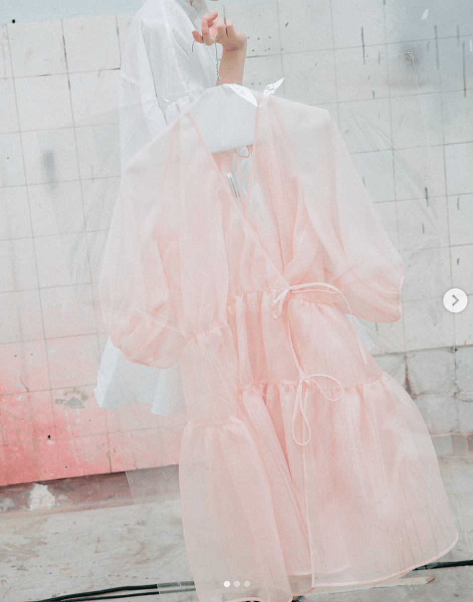 I love a sheer overlay on a dress or blouse, and I’m ecstatic to see sheer materials cropping up all over the place–so delicate and saucy. No one works with sheer materials better than Cecilie Bahnsen, though. How exquisite are the two snaps below?!