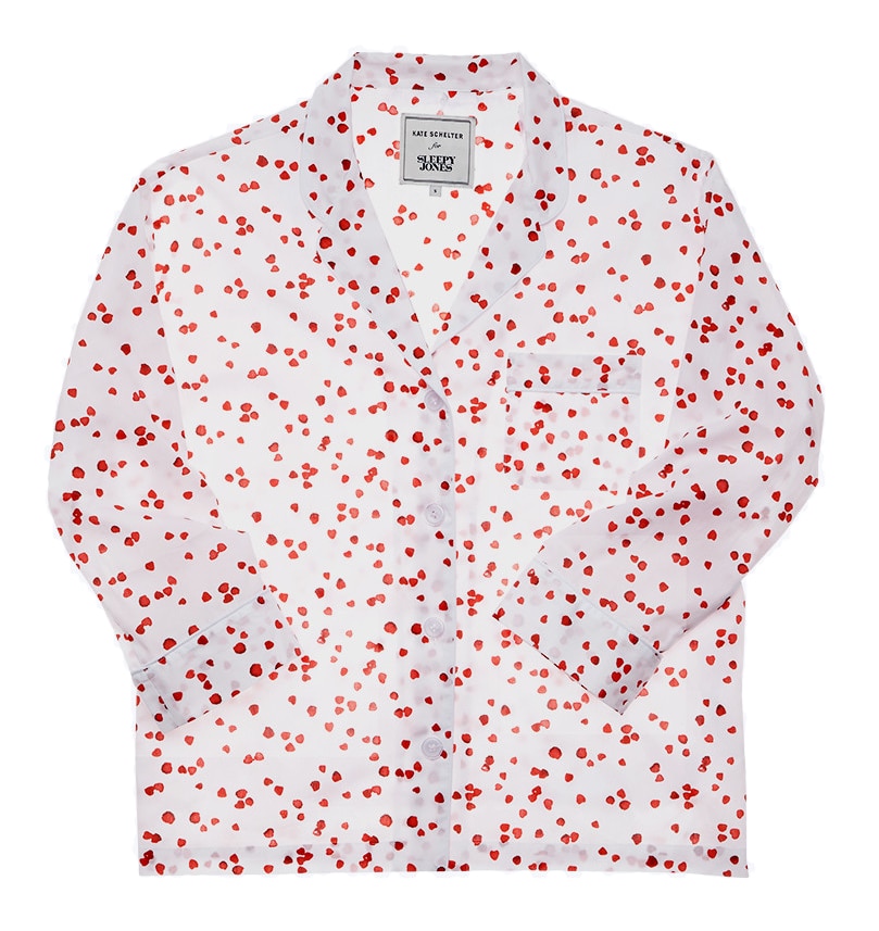 Speaking of Hearts Day (and P.S.  — check out a blog post with this title sharing a very romantic moment with my Mr. Magpie here), how adorable are these watercolor-style heart print jammies ($158 for top, $48 for boxers) from Sleepy Jones, in collaboration with artist Katie Schelter.