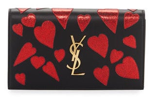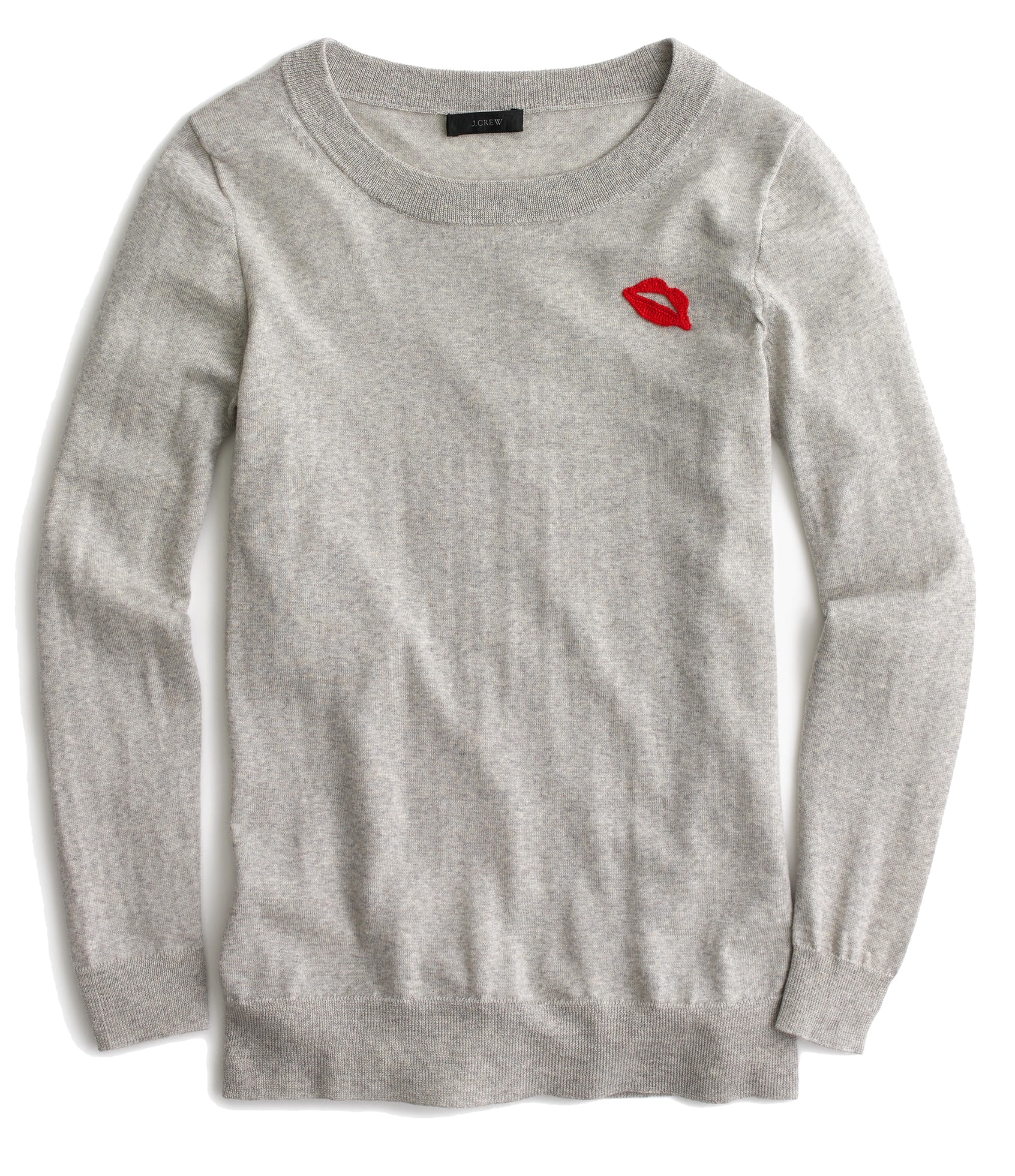 OK, one more Valentine’s Day appropriate sweater: I’m smitten (!!) with this embroidered lip sweater ($79). Â There is a lot of buzz around embroidered goods right now, and this lovely little J. Crew steal nails the look. Â I wish I could wear it with an of-the-moment pair of jeans (these are very hip with their high waist, raw hem edge, and slightly flared leg), some loafers (I need NEED these — $595), and this YSL clutch ($1550) for the perfect Hearts Day get-up.