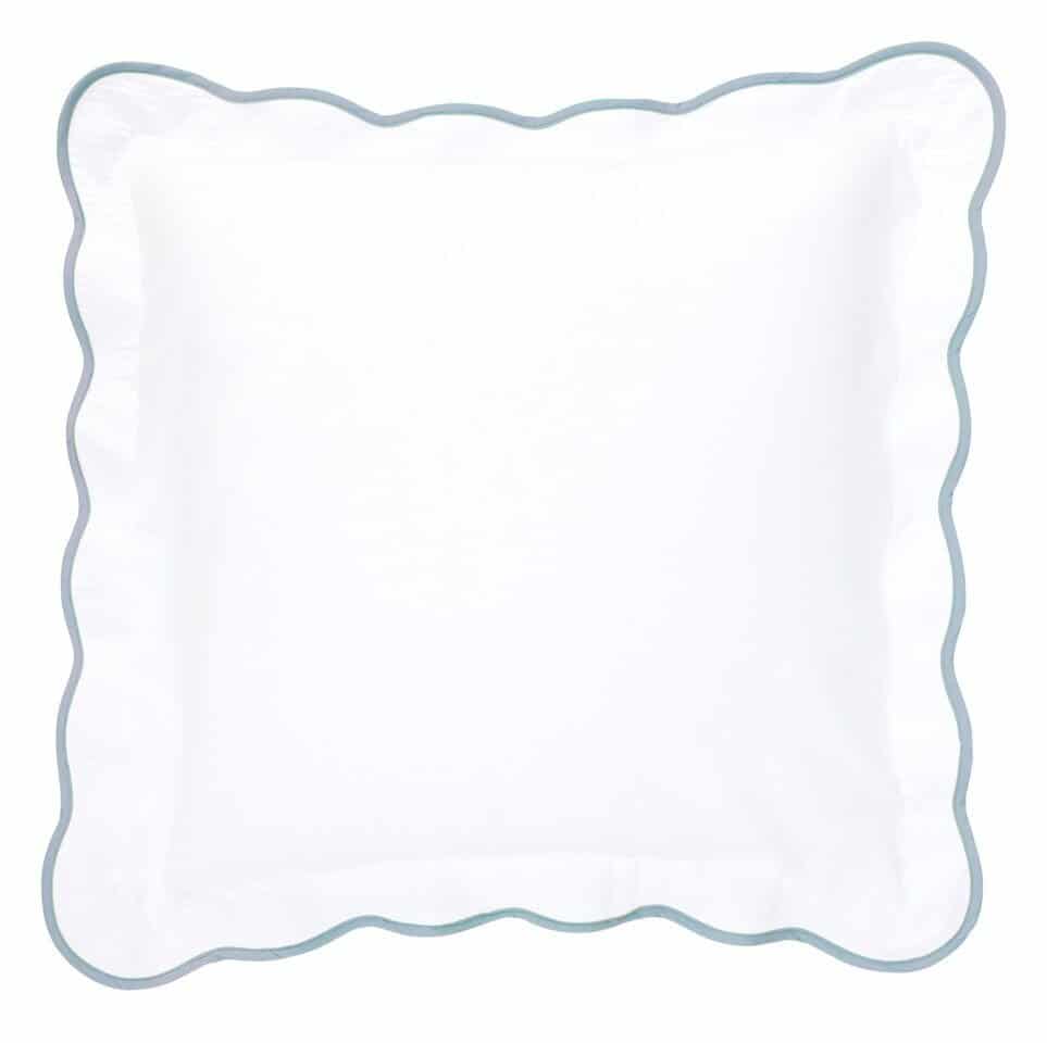 +I’d love to get these sumptuous white pique Euro shams with the most darling scalloped edges monogrammed in coordinating blue thread ($175 each). Â I might be getting the look for less with these embroidered pique pillows — you can get them in a Euro sham size already monogrammed for $114 a piece.