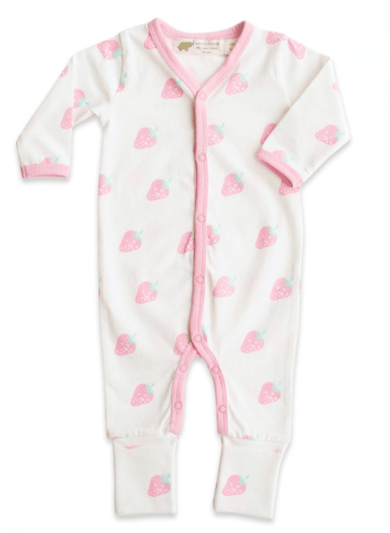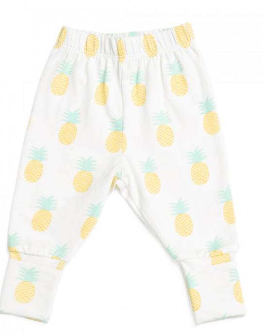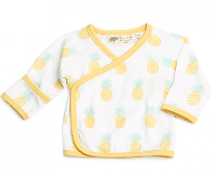 Related to the above: I always wondered why people made a fuss about the baby’s weight and length on birth announcements.  Like, why did it matter? (I naively asked.)  I now get it.  The size can give you insight into the delivery without needing to ask.  (A friend of mine delivered a 10-lb baby, and I have massive respect for her–mini was 6 lbs 9 ozs, and I felt like she was HUGE in me!  Another friend delivered a small baby (5 lbs), and I had a sense, without having to ask, why the babe was spending time in NICU.) Second, knowing the size and weight can give you the opportunity to purchase appropriately-sized newborn clothing for the new mama!  I was poorly equipped for mini’s tiny size–she lost quite a bit of weight after her birth, and I mainly had a ton of size 0-3M clothing, which she was SWIMMING in.  I was so grateful that my mom immediately ran out and snagged a ton of true newborn-sized pieces.  On this note, I love that Baby Gap and Monica + Andy carry special categories of sizes–Gap sells items that come in an “under 7 lbs” size like these onesies and these jammies, and Monica+Andy even has a convenient “preemie” size that mini wore for a few times.  I especially love this strawberry print footie ($32) and this pineapple print kimono top ($18) with pants ($18), which you probably saw on mini here.