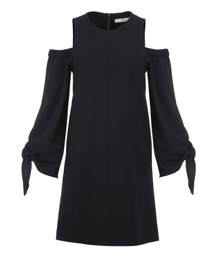 Tibi has released a variety of variations on its tie sleeve shift over the past few seasons — love this OTS style ($395) and this cold-shoulder style ($395), too, and love all the street style stars in them, as shown below. (Also, is this not the most perfect dress for a bride-to-be?!) BUT, good news for my fellow bargain-hunters: Nordstrom carries a super-cute lookalike style for $129, and I NEED it in that shell pink color! So perfect and so versatile — appropriate for work or weekend. In a similar vein, this tie-wrist Ann Taylor top ($79) is calling my name.