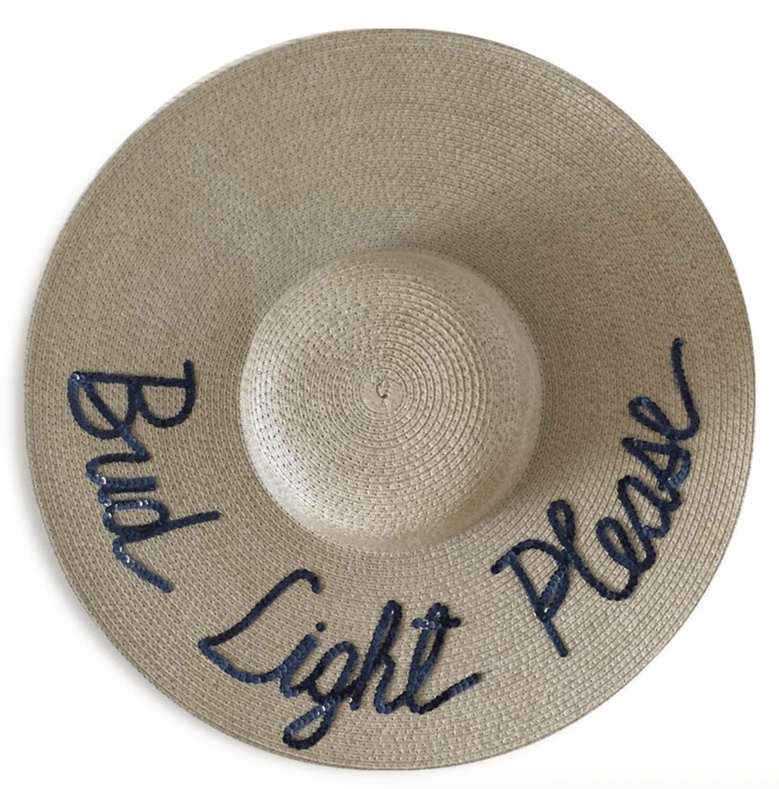 Guys. These customizable hats from Born + Made are too good ($120). So amazing for a little engagement shoot or a bachelorette party or honeymoon…or, really, any ol’ day at the beach. They’re HAND-customized (!) with glued sequins, and you can choose any saying you want. (You can also add ribbons, pom poms, and fringe if you’re going maximalista.)