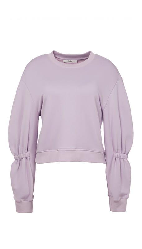 +Tibi’s sculpted sleeve sweatshirt ($250). I love the sleeve detailing, and lavender is my jam. You can get the look for less with this $78 Free People style, also in lavender, and also with a maj sleeve.