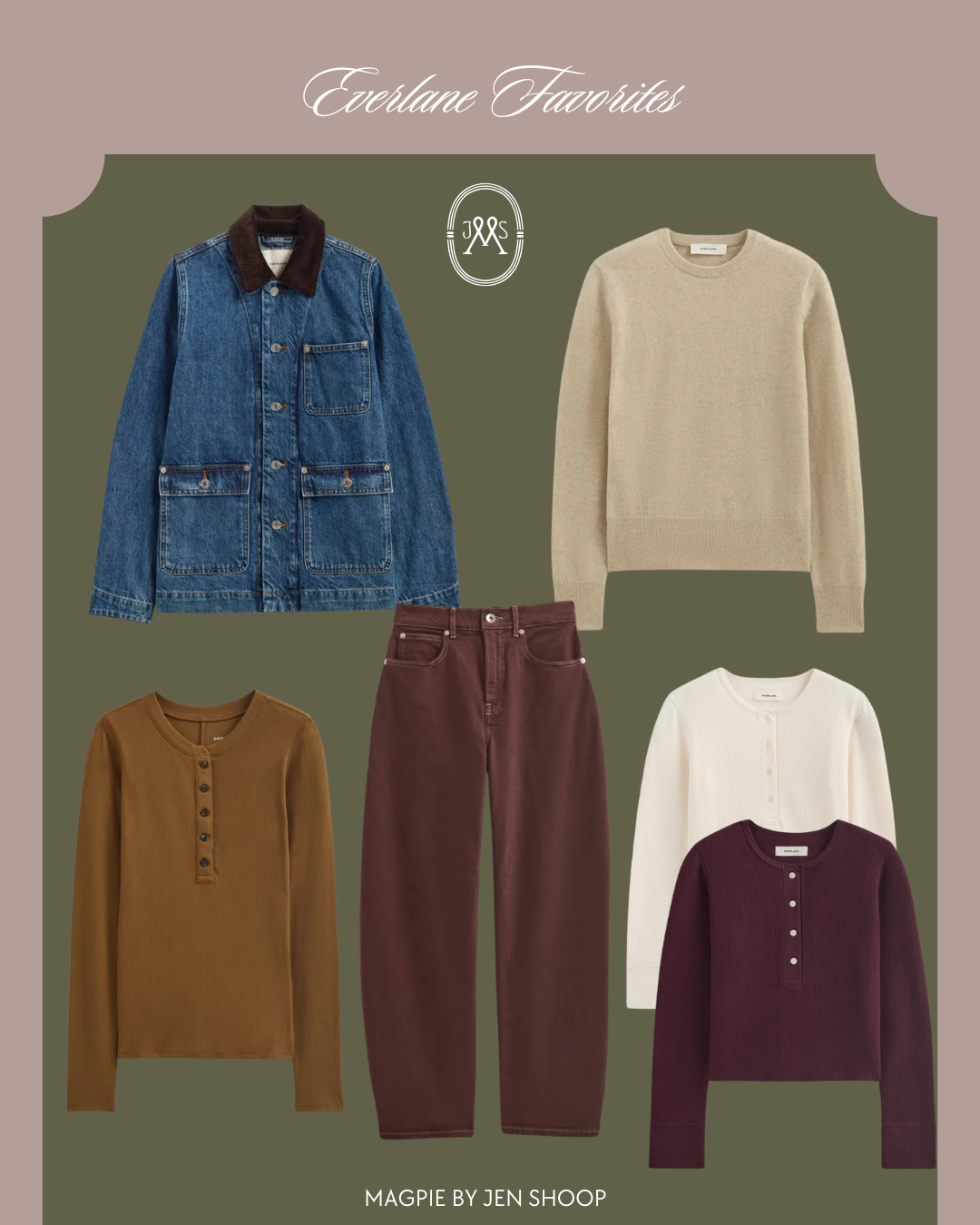 Everlane is running its best promo of the year: 30% off sitewide. Everlane is a favorite destination for wardrobe staples — specifically for their henleys and tees — but I also adore these Way-High curve jeans. A fantastic fit. They run RIGHT ON THE NOSE — maybe a tiny bit on the snug side of TTS. Currently in my cart: these elegant cashmere crewnecks and barrel cords. As you know, my toxic trait is finding the one item excluded from sale, so I do need to add that I own and love their Ranch jacket with the contrasting cord collar. I specifically like it over fall athleisure for soccer sidelines, etc. Such a simple way to elevate the entire look and it’s long enough to cover the rear.